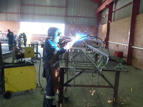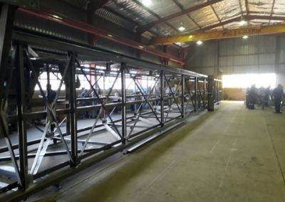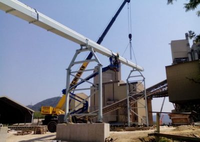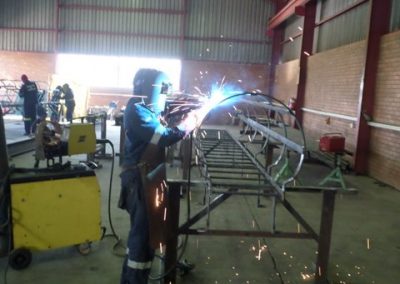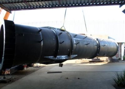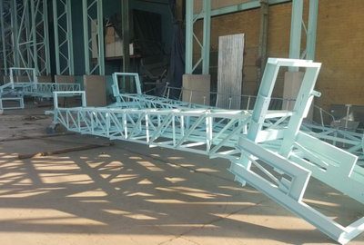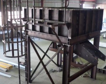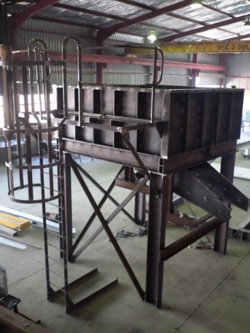 In the fabrication division of our operation we have manufactured small steelwork sections, to SABS Chemical Frames, single and double jacketed tanks, to structural steelwork, conveyors, silos and have also manufactured numerous stairways, steel floors, handrails, canopies, lifting beams, cast in items etc.